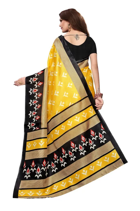 Dress Omatic-Bolllywood Style Printed Saree for Women with Jari Border – Yellow and Black Saree