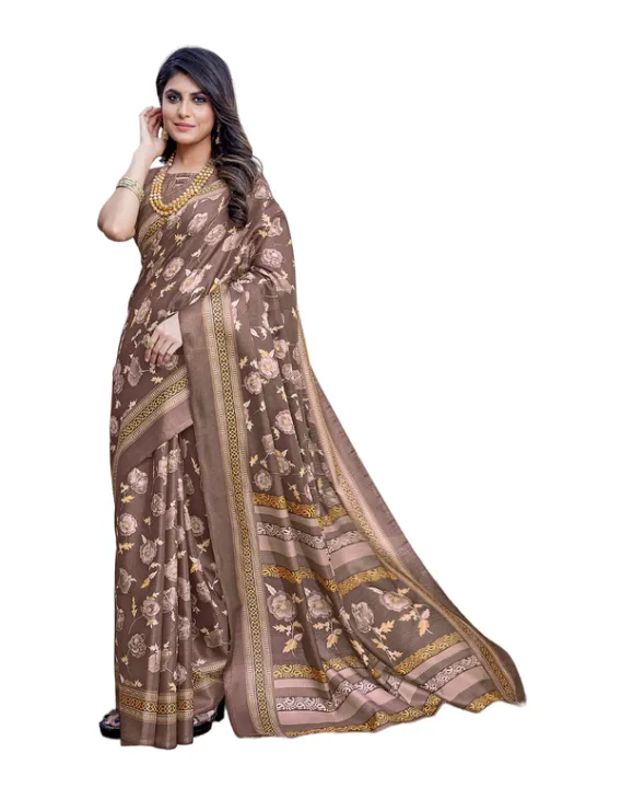 Dress Omatic Spring Heaven Art Silk Saree for Women – Brown Mauve Saree