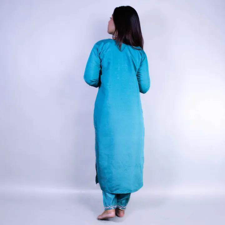 Product details of Pure Raban Cotton Kurtha Set For Women – Teal Green